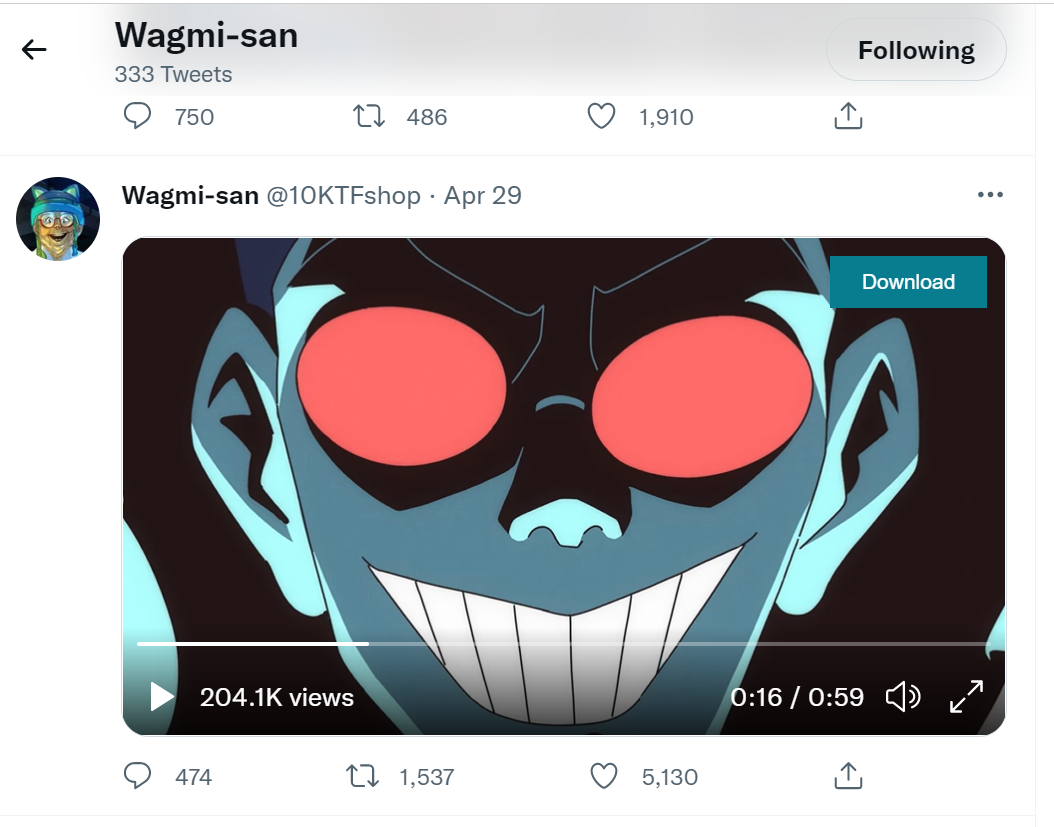 同時,RENGA中的角色也出現在了Wagmi-san的推特預告片中。